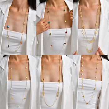 Collar de cadena de hueso de serpiente de acero inoxidable y oro de 18 quilates, abalorio redondo con perla geométrica para joyería de aniversario