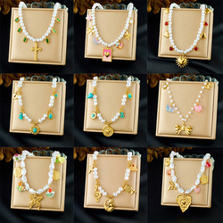 Nueva moda 18K PVD chapado en oro collar con colgante de acero inoxidable con Multi encanto corazón arco flor cereza encantos estilo de moda