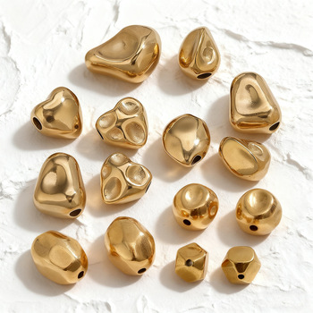 Cuentas femeninas cóncavas de acero inoxidable a prueba de agua de oro de 18 quilates chapadas en oro con textura de martillo de moda para joyería DIY