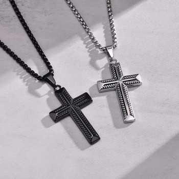 Collar con colgante de Cruz de cadena de cuerda trenzada de acero inoxidable para hombres para regalo de fiesta de aniversario