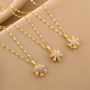 Collar de acero inoxidable chapado en oro de 18 quilates para mujer, collar de cadena de eslabones con patrón de mariposa de copo de nieve giratorio