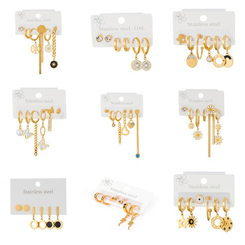 Set di orecchini da donna in acciaio inossidabile placcato oro 3 orecchini paia/set da donna