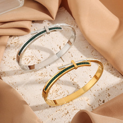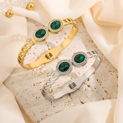 Europa e Stati Uniti aprono in acciaio inossidabile zircone verde bracciale di lusso classico stile geometrico diamante per buddisti