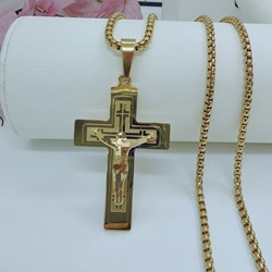 Collana pendente da uomo in acciaio inossidabile con catena in argento placcato oro con croce incisa per anniversari religiosi cristiani