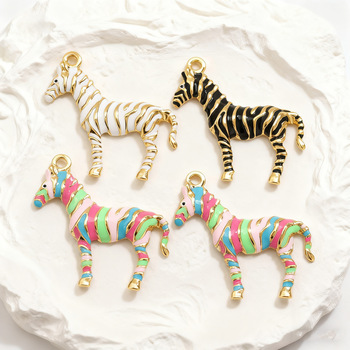 จี้ม้าลายวินเทจของผู้หญิงที่ไม่ซ้ำกันดีไซน์สร้างสรรค์จี้สัตว์ชุบทองสแตนเลสเสน่ห์อุปกรณ์ DIY สำหรับงานเลี้ยง